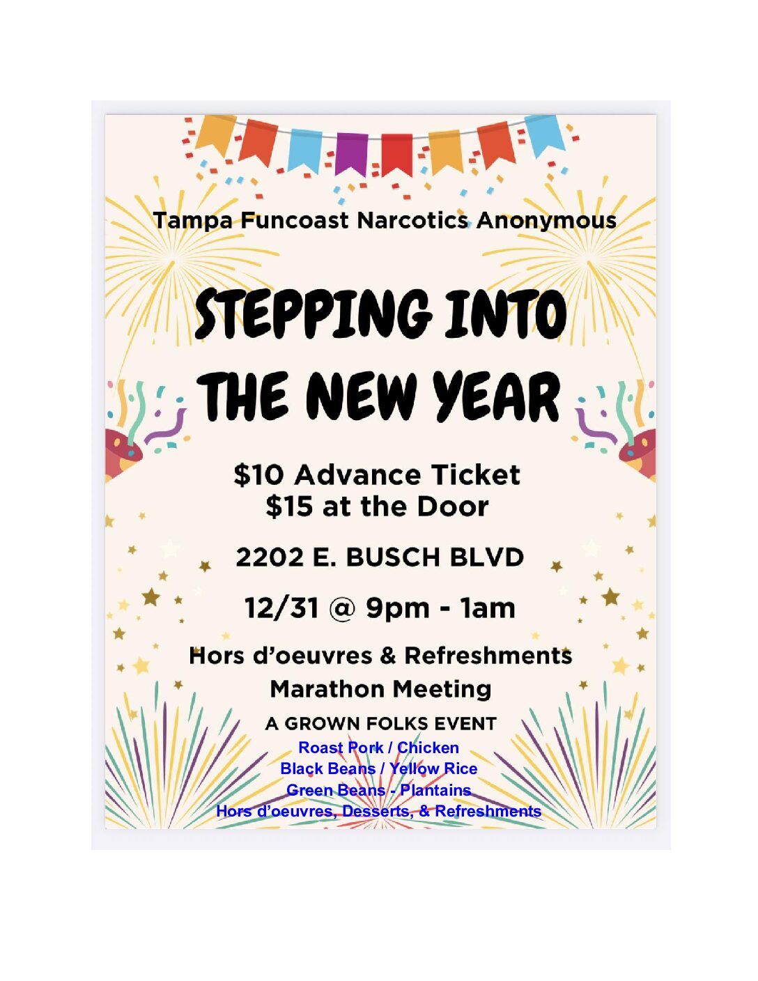 Tampa Funcoast Area NA does not endorse, finance or lend the NA name to any of the meeting facilities listed on this Web site.