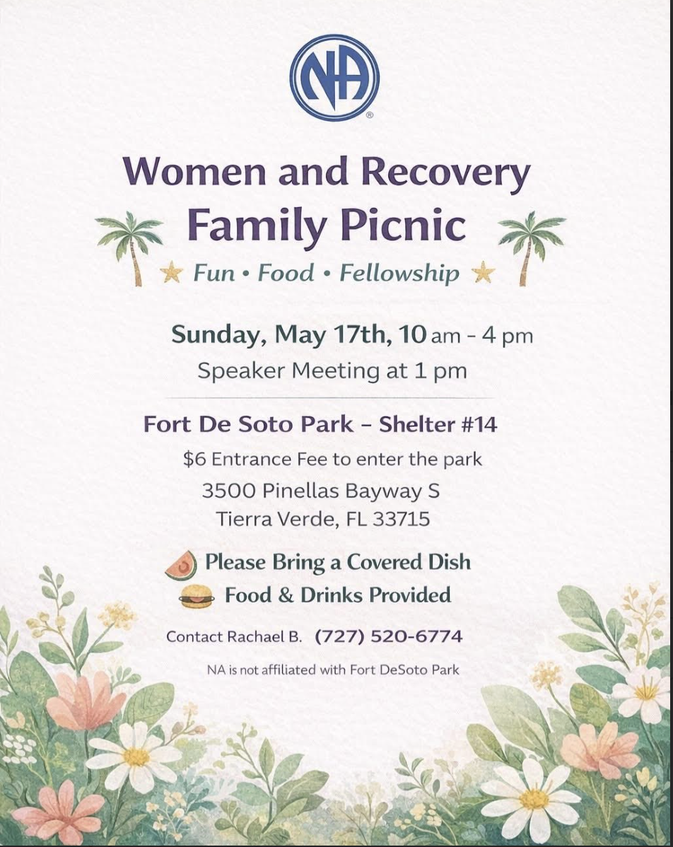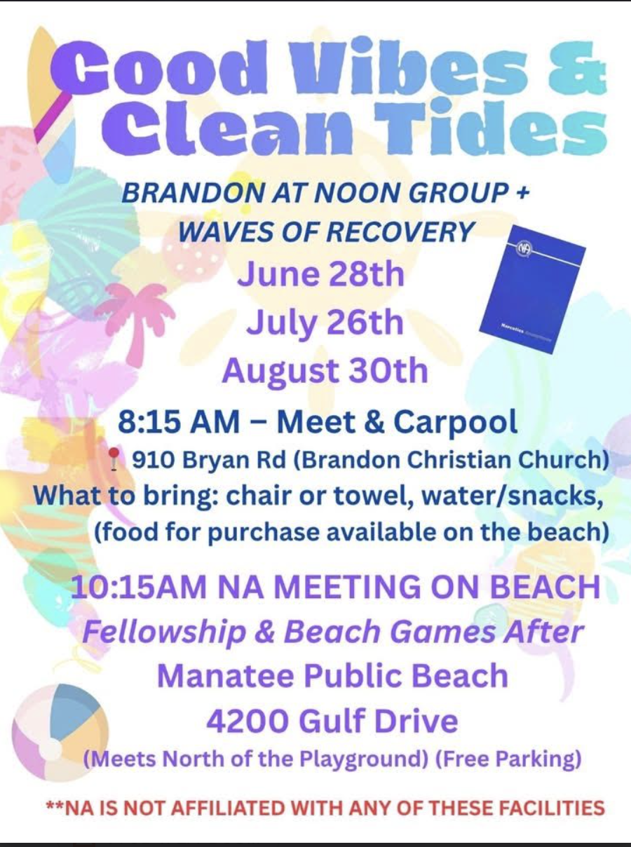 As part of the worldwide fellowship of Narcotics Anonymous, we are affiliated with the Florida Region of Narcotics Anonymous and NA World Services.